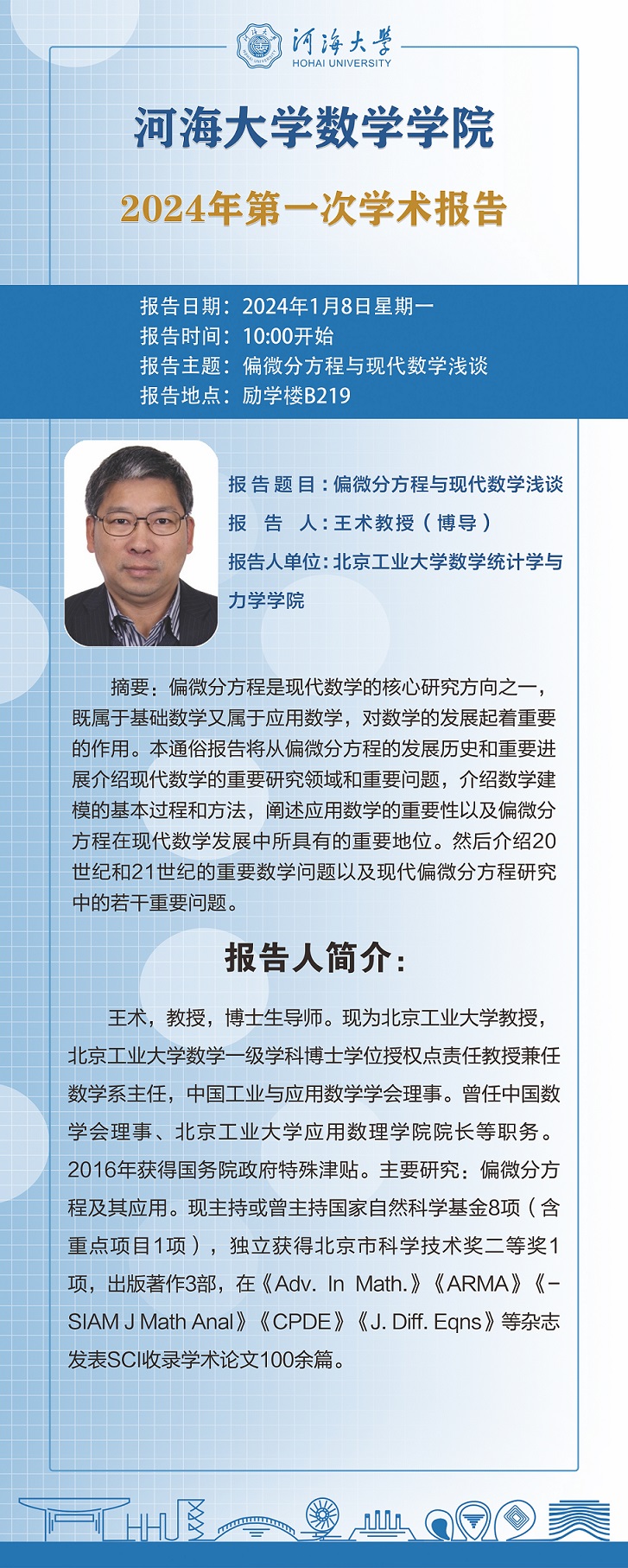 云顶老虎机 2024年第1次学术报告: 偏微分方程与现代数学浅谈