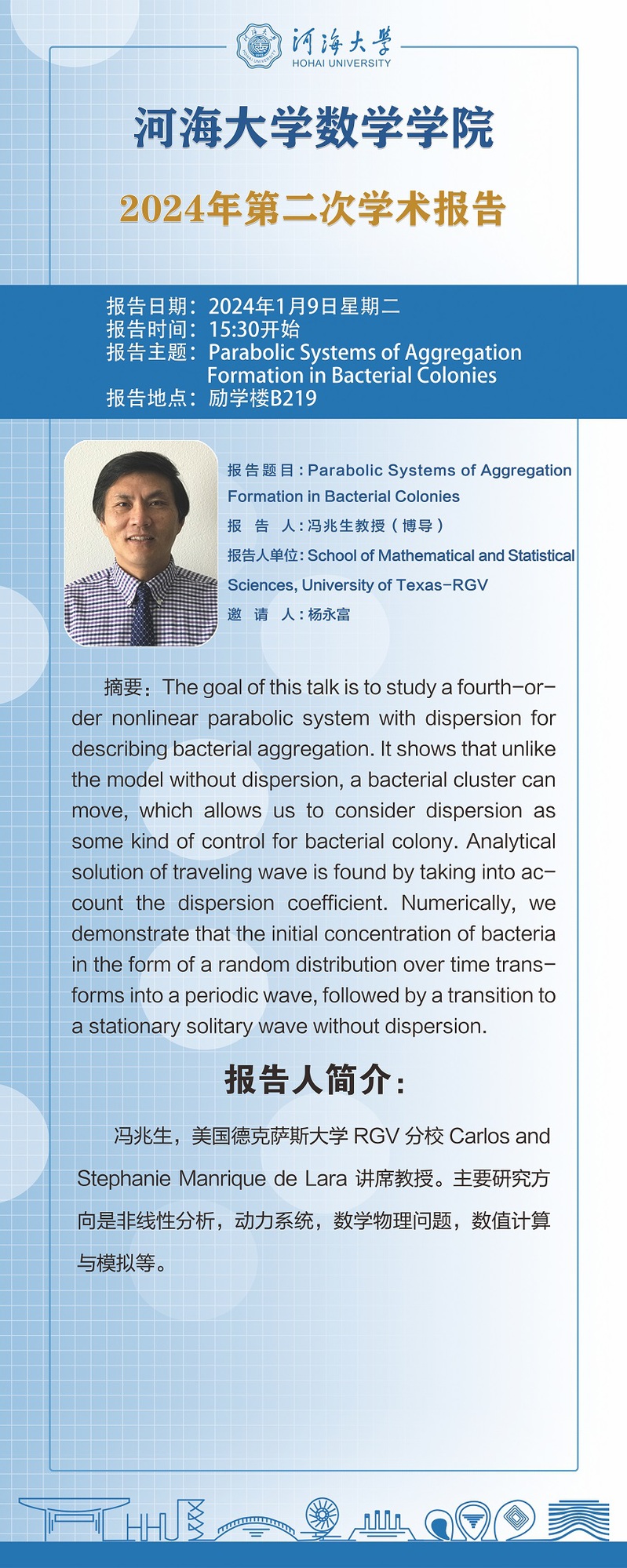 云顶老虎机 2024年第2次学术报告:Parabolic Systems of Aggregation Formation in Bacterial Colonies
