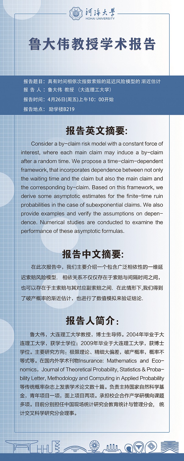 云顶老虎机 2024年第6次学术报告:具有时间相依次指数索赔的延迟风险模型的渐近估计