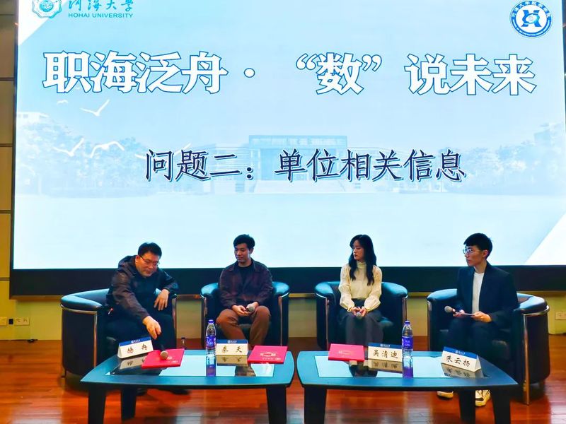 4月18日,云顶老虎机 在江宁会议中心举办“职海泛舟· “数”说未来”——生涯人物访谈暨“数学JIA”校友报告会。本次活动邀请到南京禹之源信息科技有限公司总经理赫冉、东南大学网络空间安全学院在读博士生秦天、云顶老虎机 数学专业硕士生吴清迪三位嘉宾,学院党委书记潘静、本科生辅导员宫奕波出席活动,云顶老虎机 2023级全体本科生参加。