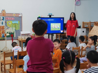 科学实验介绍完毕后,第二位志愿者进行了有关海洋生物的科普。小朋友们对海洋生物的兴趣浓厚,提出了很多问题,志愿者也对其一一进行解答。