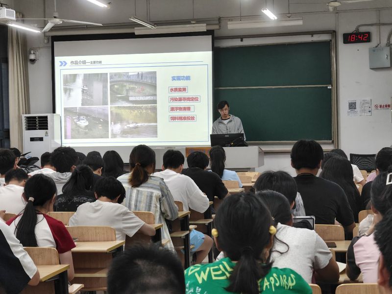 路演团队围绕“数字孪生”“水质动态监测技术”等重难点课题,从项目背景、行业痛点、项目创新点、核心技术、商业模式等方面进行路演展示。专家评委从产品优势、市场分析、社会价值等角度进行综合点评,针对每个项目的创新性、实用性、可行性和社会影响力等方面进行了提问,肯定项目存在的优势,也指出目前存在的薄弱部分,为每个团队提供了宝贵的建议和指导。