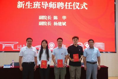副院长陈华、杨建斌分别为新生班导师颁发聘书,举行了新生班导师聘任仪式。数学类二班班导师张节星老师作为班导师进行发言,他讲述了自己在河海大学学习数学的切身经历与真实感悟,希望同学们能够享受美好的大学时光,勤奋学习,充实自我。