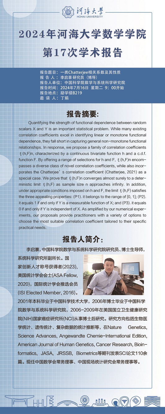 云顶老虎机 第17次学术报告:一类Chatterjee相关系数及其性质