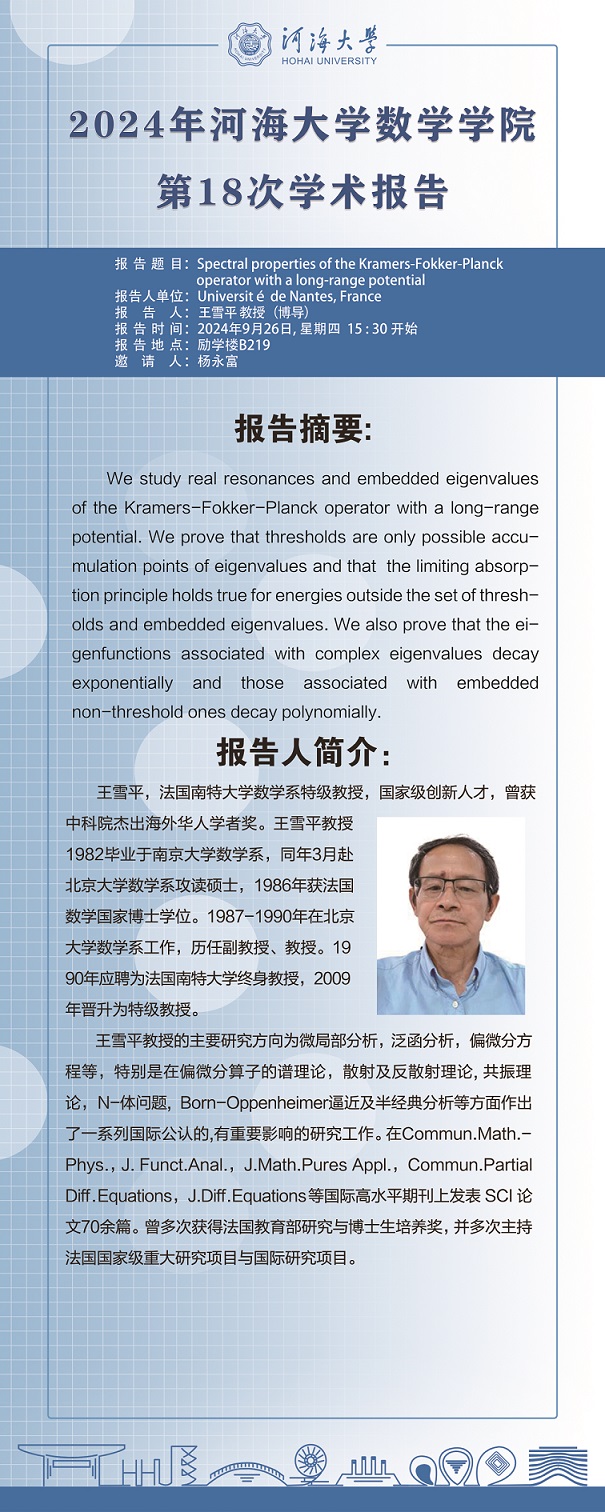 云顶老虎机 第18次学术报告:Spectral properties of the Kramers-Fokker -Planck operator with a long-range potential