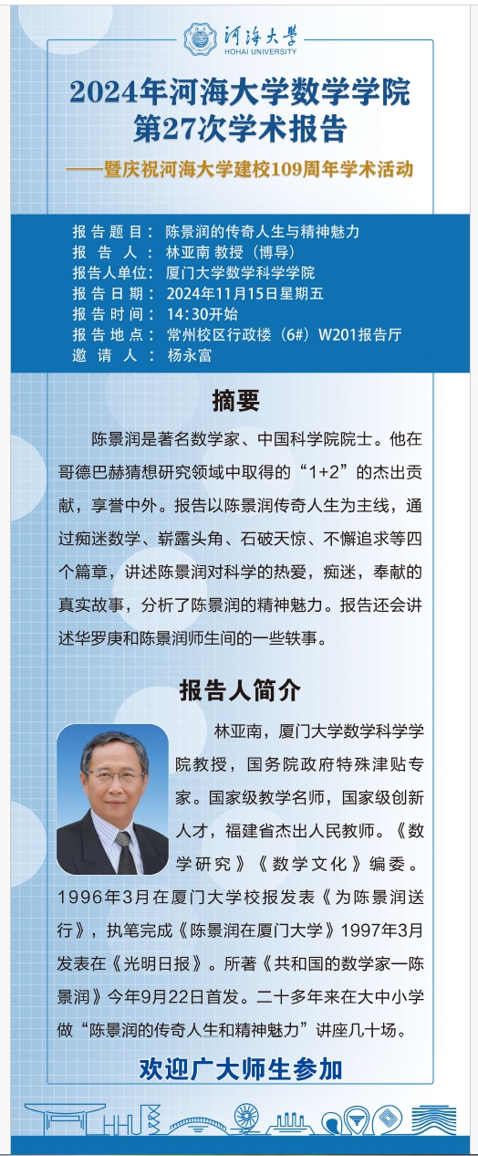 云顶老虎机 第27次学术报告:陈景润的传奇人生与精神魅力