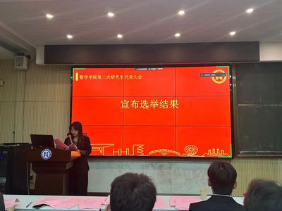 大会总监票人倪佳宁同学宣读了新一届研究生会学生干部的选举结果。