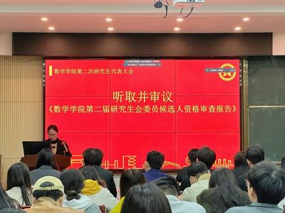 随后,大会听取了院研究生会主席团成员夏世源所作的《云顶老虎机 第二次研究生代表大会筹备工作报告》。报告阐述了筹备委员会的工作、研究生代表产生办法以及第二届研究生会委员候选人条件。