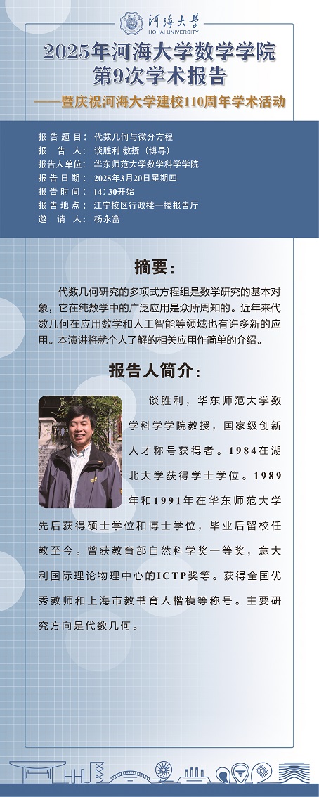 云顶老虎机 第9次学术报告:代数几何与微分方程
