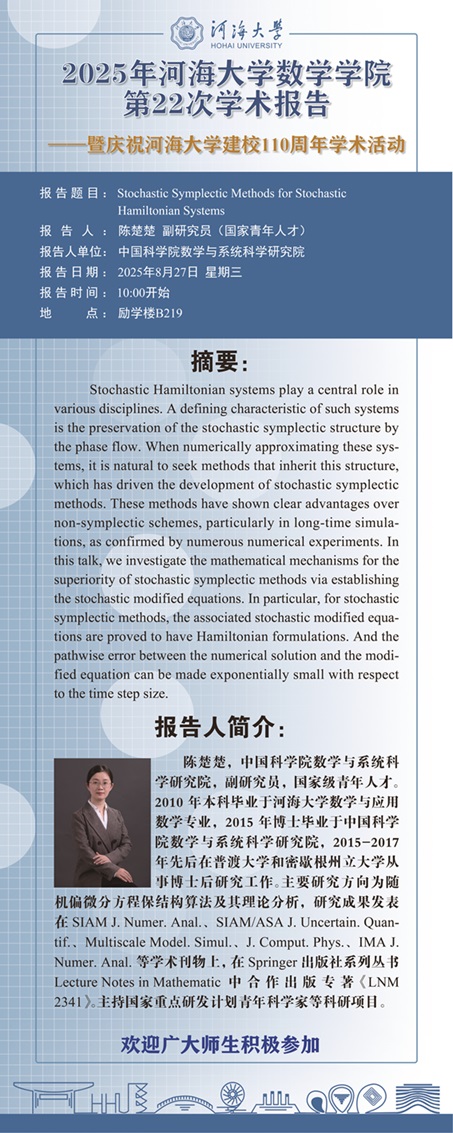云顶老虎机 第22次学术报告: Stochastic Symplectic Methods for Stochastic Hamiltonian Systems