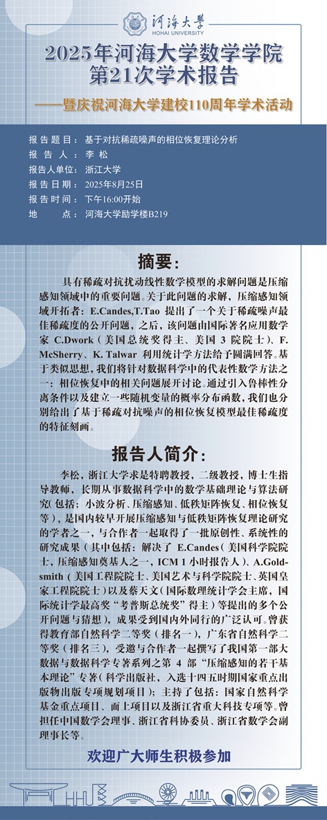 云顶老虎机 第21次学术报告:基于对抗稀疏噪声的相位恢复理论分析