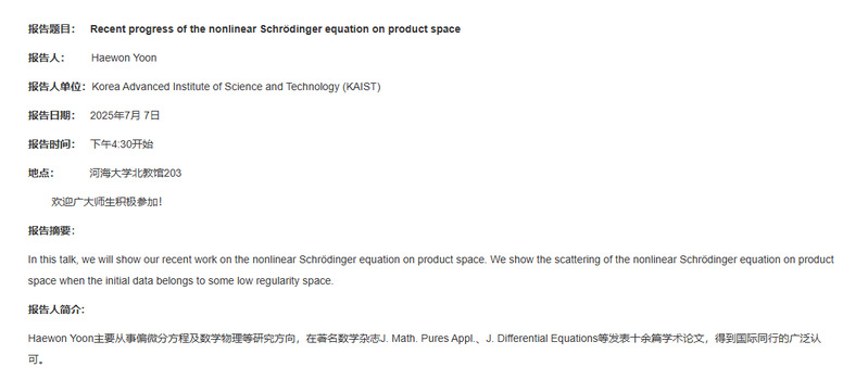云顶老虎机 第16次学术报告:Recent progress of the nonlinear Schrödinger equation on product space