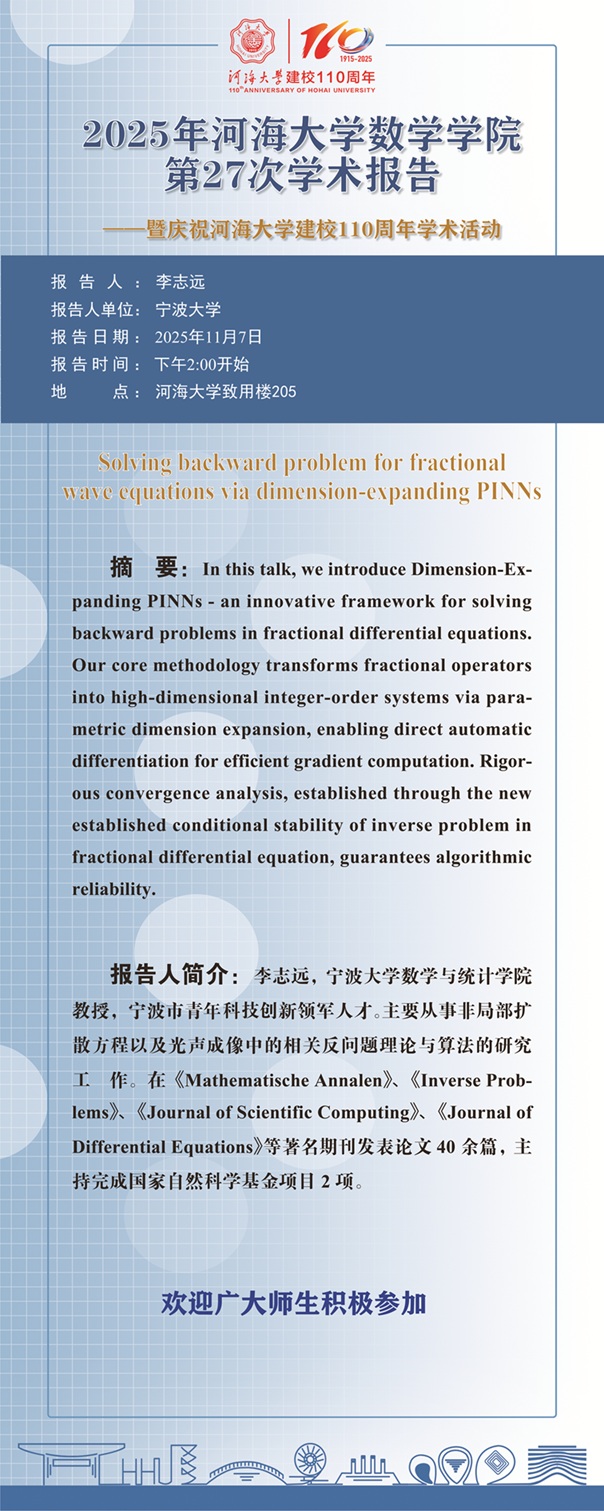 云顶老虎机 第27次学术报告:Solving backward problem for fractional wave equations via dimension-expanding PINNs