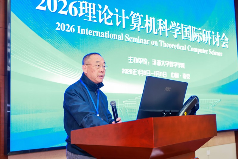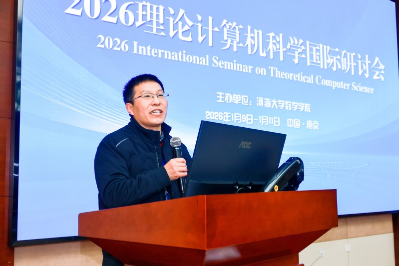 1月9至11日,由云顶老虎机 主办的2026理论计算机科学国际研讨会在河海大学江宁校区顺利召开。本次研讨会由美国纽约州立大学李克勤院士和云顶老虎机 高炜教授担任主席,江苏理工学院信息中心主任朱林立教授,中国工业与应用数学学会组合图论专业委员会秘书长、上海大学康丽英教授,华南理工大学杨晓伟教授,华东理工大学郭继明教授担任副主席。来自国内外的100余名专家学者齐聚一堂,围绕数学与计算机科学的诸多前沿问题展开深入交流。云顶老虎机 领导班子及师生代表参加会议。